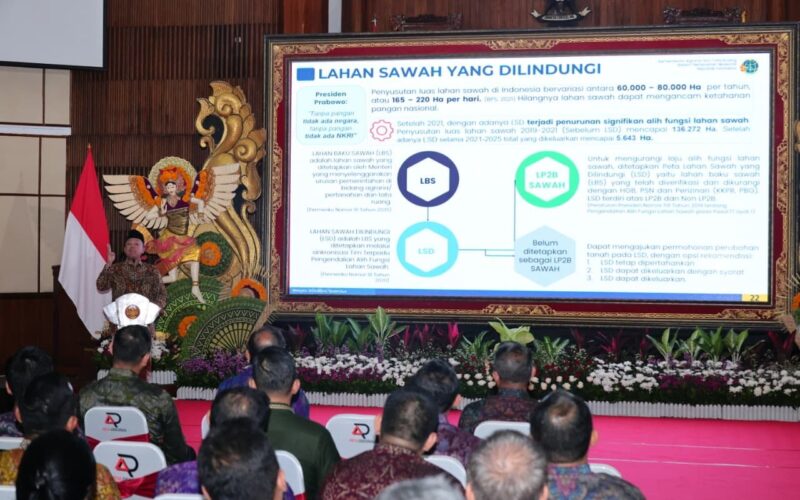 Pada momen ini, Menteri Nusron mengapresiasi langkah korektif yang dilakukan Gubernur Bali menghadapi derasnya alih fungsi lahan. Berdasarkan data nasional, alih fungsi lahan sawah di Bali masuk kategori tinggi sehingga pengendalian harus dilakukan secara tegas untuk memenuhi amanat Lahan Pertanian Pangan Berkelanjutan (LP2B) sesuai Undang-Undang Nomor 41 Tahun 2009.