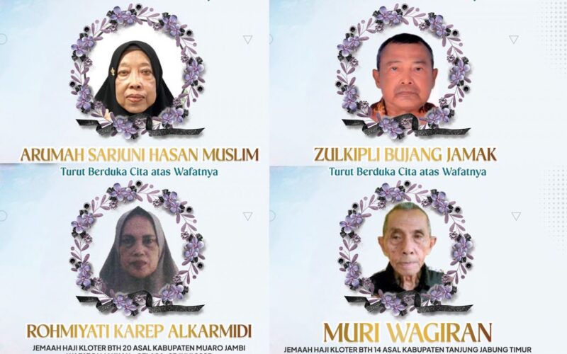 KILAS JAMBI – Inna lillahi wa inna ilaihi raji’un, pada jelang beralih ke Arafah untuk menunaikan rukun wajib haji, kabar duka kembali mewarnai penyelenggaraan ibadah haji tahun 2025. Tiga jemaah Provinsi Jambi kembali dikabarkan wafat saat masa-masa krusial jelang puncak haji di Arafah, Muzdalifah, dan Mina (ARMUZNA) dan seorang jemaah Provinsi Jambi dikabarkan wafat di Arafah. Berikut adalah empat jemaah yang meninggal dunia tersebut: