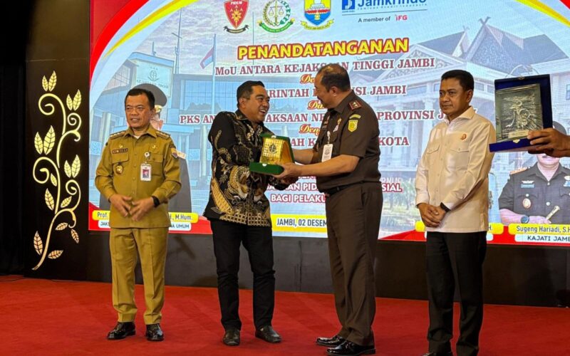 KILASJAMBI – PT Jaminan Kredit Indonesia (PT Jamkrindo), perusahaan penjaminan kredit terbesar di Indonesia, ikut berkontribusi dalam kolaborasi bersama Kejaksaan RI dan Pemerintah Provinsi Jambi untuk menegakkan keadilan restoratif yang berfokus pada pemulihan kembali pada keadaan semula serta keseimbangan perlindungan dan kepentingan korban maupun pelaku tindak pidana yang tidak berorientasi pada pembalasan.