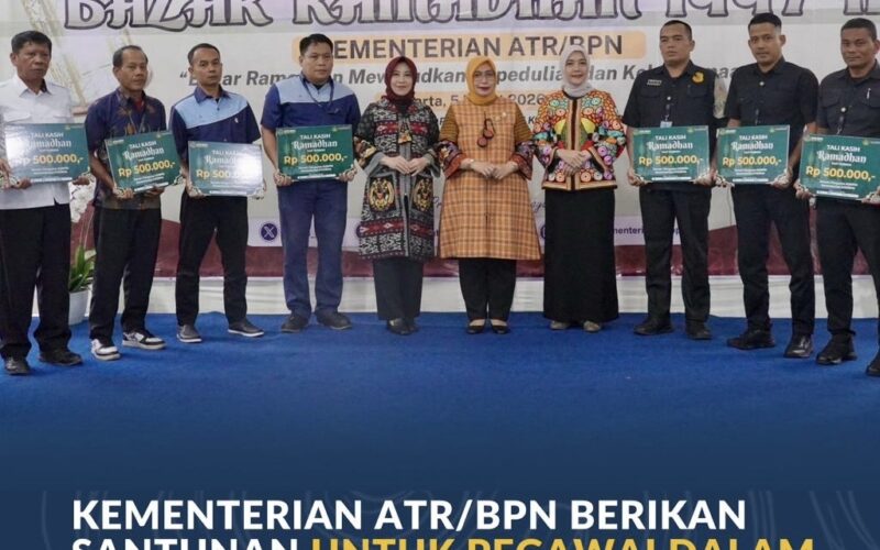 Jakarta – Di momen Ramadan, Kementerian Agraria dan Tata Ruang/Badan Pertanahan Nasional (ATR/BPN) menyalurkan santunan dan bingkisan kepada perwakilan keluarga Kementerian ATR/BPN yang terdiri dari Aparatur Sipil Negara (ASN), pramubakti, satpam, dan pengemudi di Kementerian ATR/BPN.