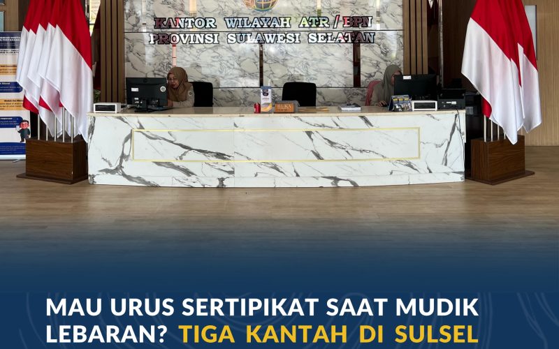 Makassar – Bagi masyarakat yang ingin mengurus administrasi pertanahan saat sedang mudik ke kampung halaman, Kementerian Agraria dan Tata Ruang/Badan Pertanahan Nasional (ATR/BPN) membuka layanan terbatas di sejumlah wilayah. Tak terkecuali, tiga Kantor Pertanahan (Kantah) di Provinsi Sulawesi Selatan (Sulsel).