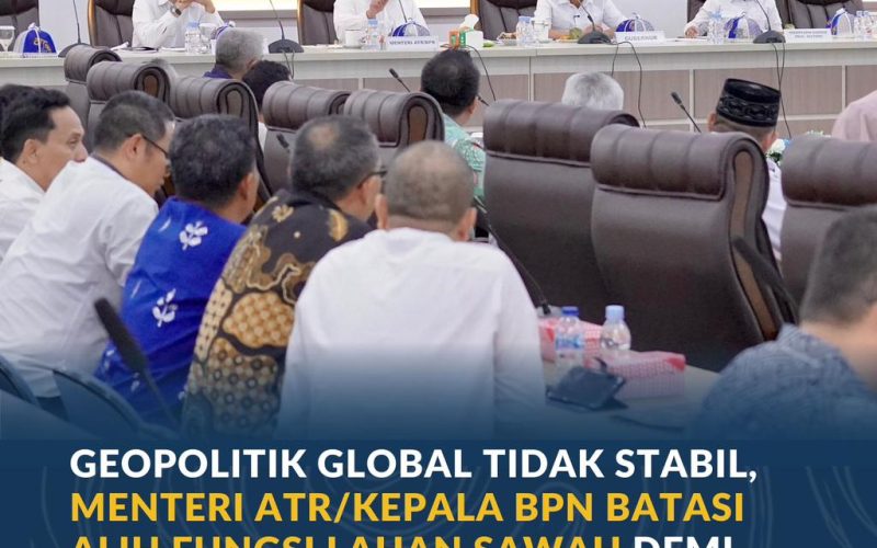 Palu – Di tengah kondisi geopolitik global yang tidak stabil, Menteri Agraria dan Tata Ruang/Kepala Badan Pertanahan Nasional (ATR/BPN), Nusron Wahid, menegaskan bahwa ketahanan pangan menjadi prioritas nasional. Oleh karena itu, Kementerian ATR/BPN menerapkan pembatasan alih fungsi lahan sawah maksimal hanya 11% dari total Lahan Baku Sawah (LBS), sementara sekitar 89% sisanya wajib dilindungi.