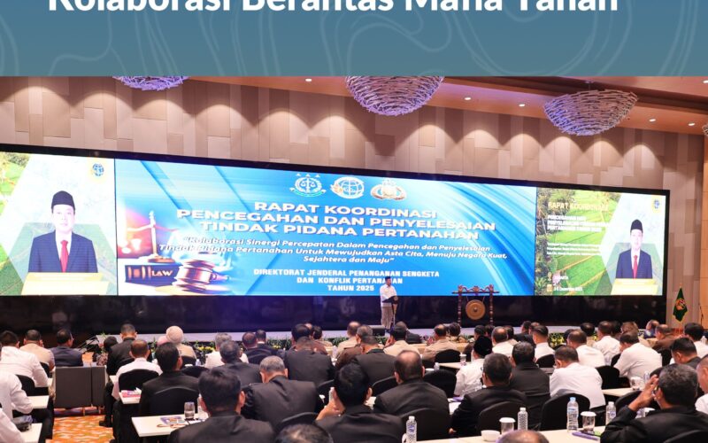 Jakarta – Menteri Agraria dan Tata Ruang/Kepala Badan Pertanahan Nasional (ATR/BPN), Nusron Wahid, membuka Rapat Koordinasi Pencegahan dan Penyelesaian Tindak Pidana Pertanahan Tahun 2025 dengan menekankan pentingnya kolaborasi bersama seluruh aparat penegak hukum (APH) dalam memberantas mafia tanah. Ia mengatakan, kejahatan pertanahan makin berkembang seiring berjalannya waktu.