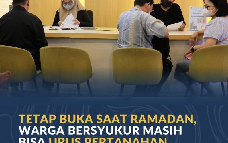 Jakarta – Memasuki bulan Ramadan, kebutuhan masyarakat dalam mengurus sertipikat tanah tidak surut. Hal ini terlihat di Kantor Pertanahan (Kantah) Kota Administrasi Jakarta Barat, di mana masyarakat tetap memanfaatkan Pelayanan Tanah Akhir Pekan (PELATARAN). Layanan yang dibuka setiap hari Sabtu dan Minggu ini memudahkan masyarakat pekerja untuk mendapatkan pelayanan pertanahan, termasuk untuk mengurus peralihan hak waris.