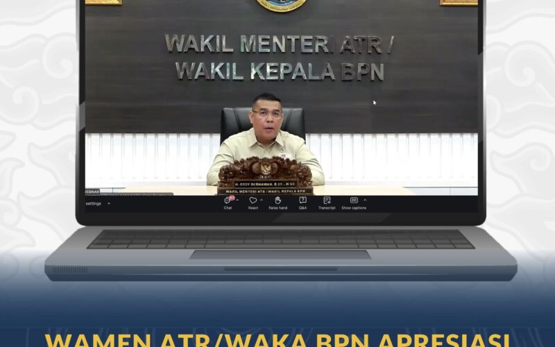 Jakarta – Wakil Menteri Agraria dan Tata Ruang/Wakil Kepala Badan Pertanahan Nasional (Wamen ATR/Waka BPN), Ossy Dermawan, menjadi narasumber dalam Webinar Nasional Masyarakat Profesi Penilai Indonesia (MAPPI) pada Senin (23/02/2026).